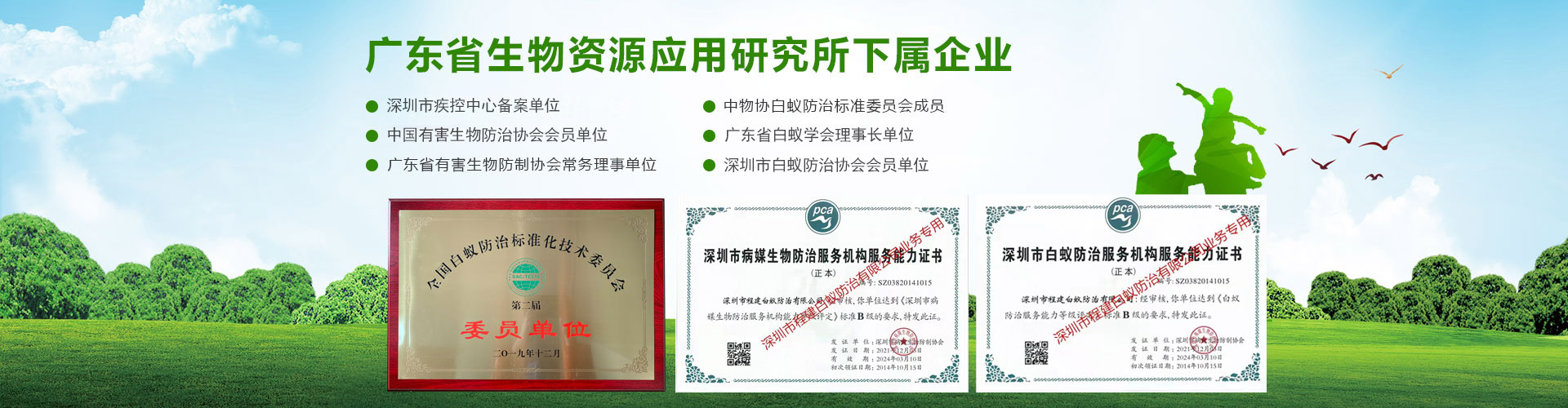 深圳市程建白蟻防治中心有限公司(深圳市白蟻防治中心、深圳市殺白蟻公司、滅白蟻公司、治白蟻公司、除白蟻公司、防白蟻公司、深圳市消殺公司、深圳市殺蟲公司)、于二00二年十一月成立。是經(jīng)深圳市政府有關(guān)部門批準(zhǔn),市工商行政管理局注冊(cè)登記的法人企業(yè),深圳市蟲鼠防治協(xié)會(huì)(PCO)成員單位,持有政府部門頒發(fā)“白蟻防治服務(wù)機(jī)構(gòu)服務(wù)能力證書B級(jí)”、“有害生物防制服務(wù)機(jī)構(gòu)服務(wù)能力證書B級(jí)”雙資質(zhì)證書的有害生物防治單位。公司主要服務(wù)政府、事業(yè)、企業(yè)、工廠、賓館、園林、小區(qū)、大廈等單位的白蟻防治、有害生物防制施工的專業(yè)機(jī)構(gòu)。技術(shù)力量雄厚,擁有各層次專業(yè)技術(shù)人員三十多名。